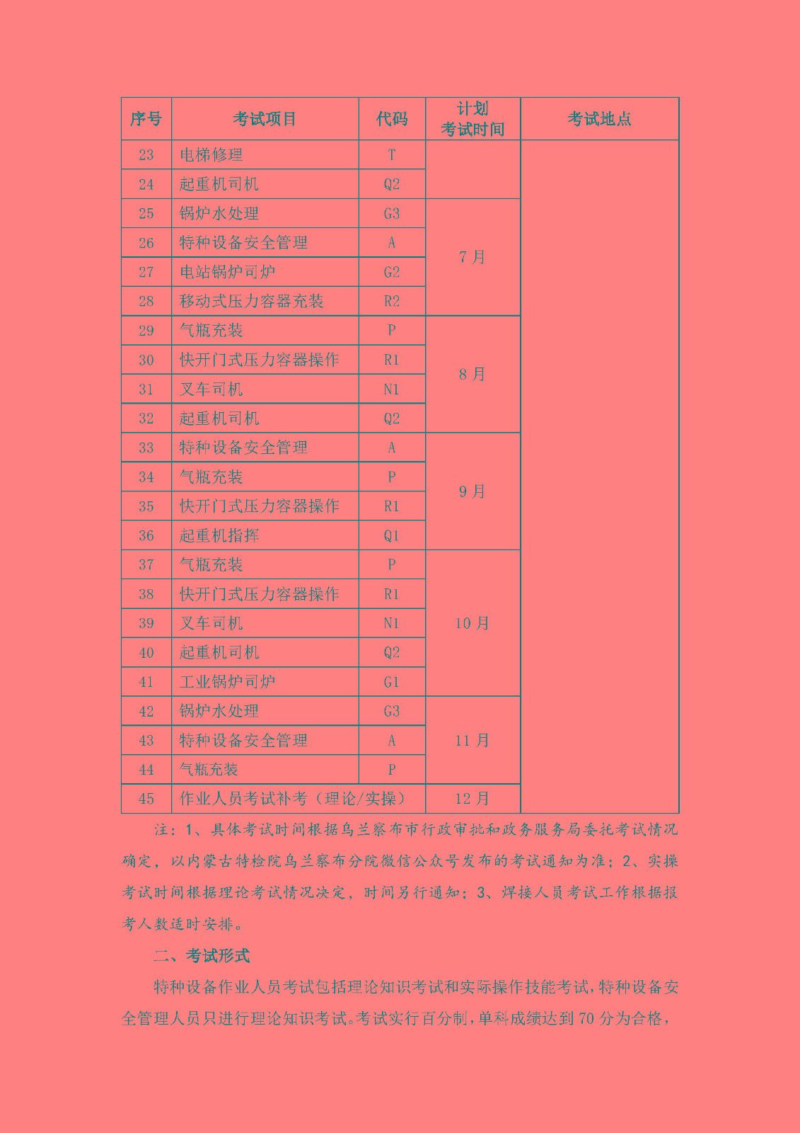 内蒙古自治区特检院乌兰察布分院关于2025年特种设备作业人员考试计划安排的通知