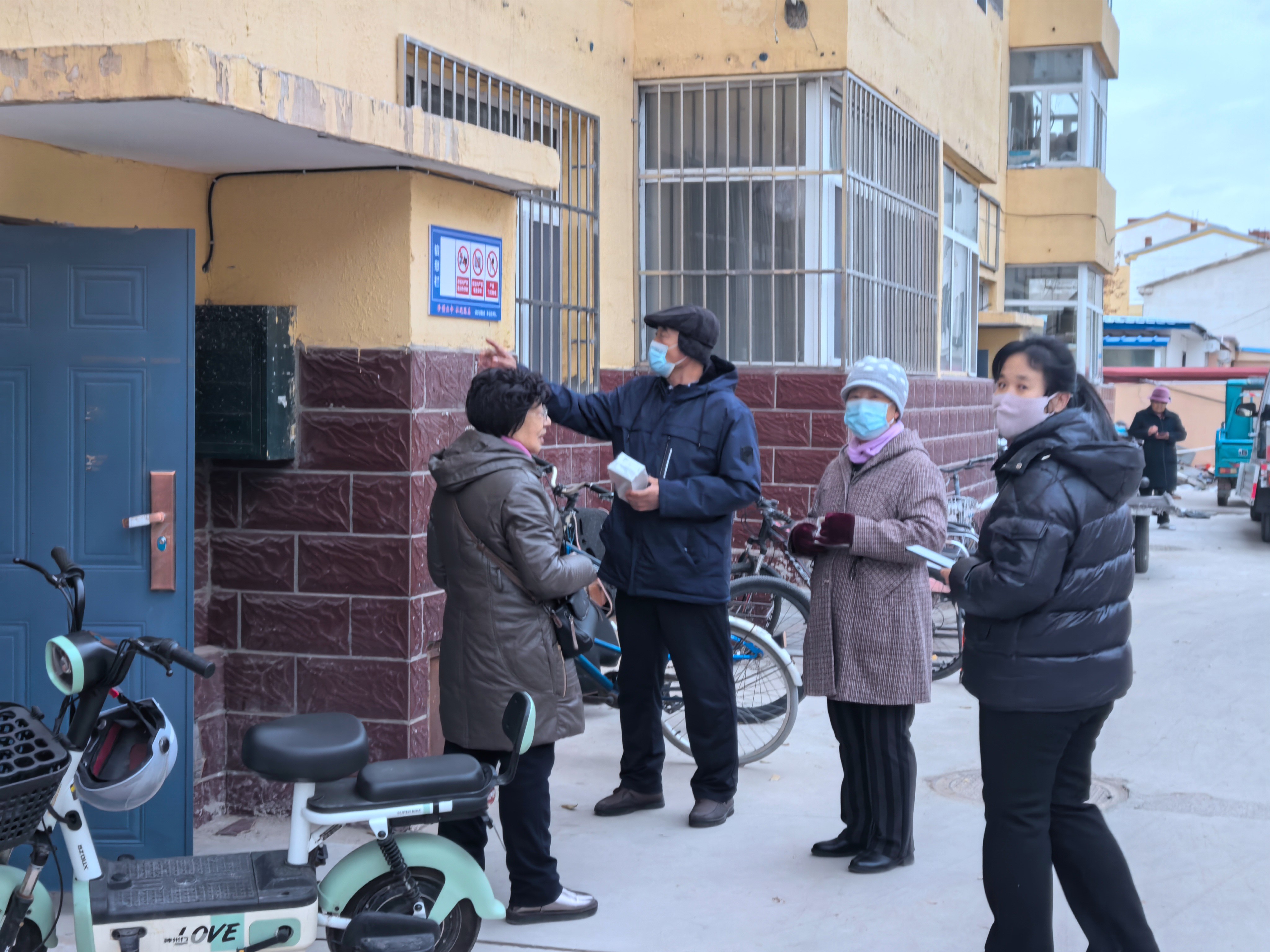 志愿服务活动现场,为不断完善社区治理体系,提高社区治理能力,党员在电信小区院内张贴警示提醒公告,并讲解特种设备安全知识,有效提升居民安全防护意识。此次活动共计为20栋楼张贴了禁止停放电动车、禁止电动车飞线充电警示提醒公告。