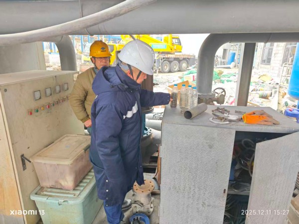 内蒙古特检院阿拉善分院检验人员针对此次检验制定了专项检验方案,检验人员在约定的时间到达检验现场,首先审查了清洗单位的施工资质、操作人员资质、化学清洗方案等资料,确定了清洗单位具有完成本次清洗任务的能力。然后进入现场检查清洗设备、清洗液的配比和安全防护措施等现场准备情况,确定具备清洗条件后,对“冲洗-酸洗-后冲洗-漂洗-钝化-废液处理与排放”整个清洗过程进行了监检。在检验过程中,检验人员严格执行相关标准,克服户外低温风沙环境,反复检查腐蚀指示片和试件,确保清洗过程和化验指标符合规程要求。清洗过程结束后,称重腐蚀指示片,计算出金属腐蚀速率和腐蚀总量均符合《GB/T34355-2017》标准的要求。最后对处理后的废液进行了取样化验,化验结果符合标准规定。