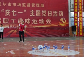 “七.一”来临之际,为进一步贯彻落实习近平新时代中国特色社会主义思想和党的二十大精神,凝聚党员干部职工奋勇争先、顽强拼搏的工作热情和干事创业激情。6月29日, 呼伦贝尔市市场监管局“庆七一”主题党日暨首届职工趣味运动会在呼伦贝尔学院体育馆激情开启,我院领导班子高度重视此项活动,积极组织职工参与,院领导亲自统筹部署并领队参赛,整个竞赛场地激情飞扬,秩序井然。
